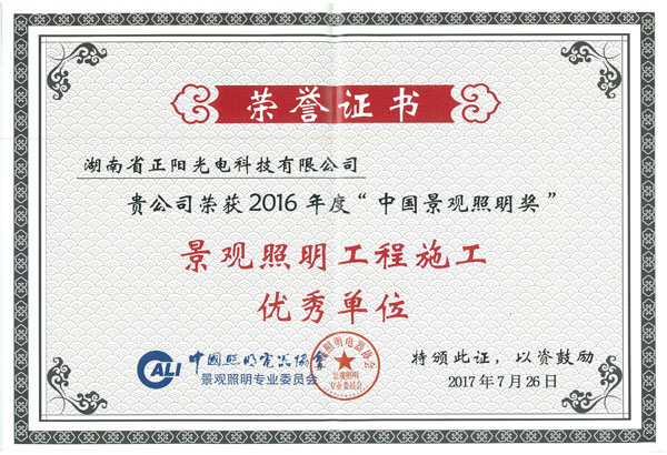 湖南省正陽光電科技有限公司是一家從事亮化工程及大型燈光藝術的設計、制作、安裝和維護于一體的專業化公司。公司資質齊全、管理嚴謹、技術先進、實力雄厚,取得了城市及道路照明工程專業承包壹級資質、照明工程設計專項甲級資質、機電工程施工總承包貳級資質、施工勞務等資質,榮獲“重質量·守誠信”示范企業。